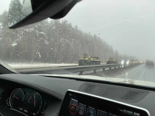 Корреспондент «Медузы» заметил колонну бронетехники, которая двигалась в сторону Москвы по Горьковскому шоссе около 10 утра.
